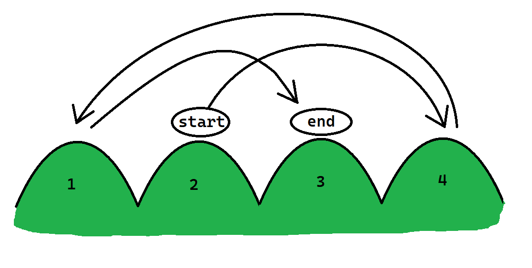 There are 4 mountains. Beau should start by climbing mountain 2, then mountain 4. These are two spaces apart, so Beau will have an enjoyment of 2. After that, Beau should climb mountain 1. Mountain 1 is 3 spaces from mountain 4, so Beau will have an enjoyment of 3. Finally, Beau should travel 2 spaces to mountain 3 for an enjoyment of 2. Beau enjoyed mountains 4 and 3 the least, with an enjoyment of 2. This is the largest possible. The path 3 -> 1 -> 4 -> 2 also achieves a minimum enjoyment of 2, but it is lexicographically greater than the one achieved by starting at mountain 2.