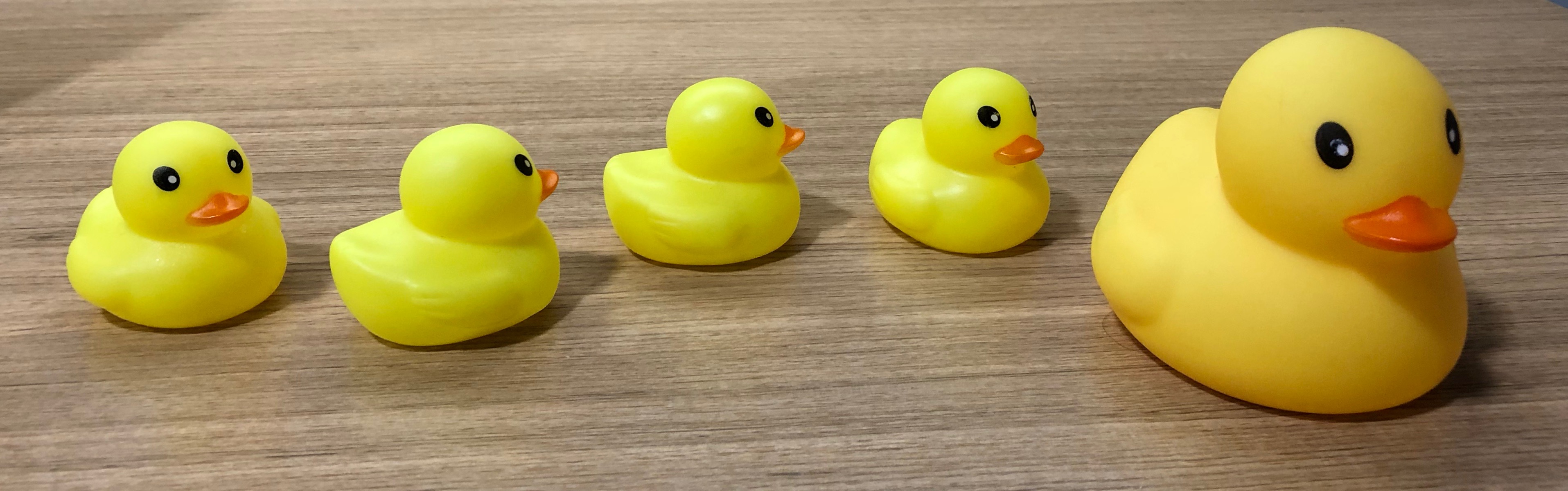Sort these ducks by their last name. Ducks with the same last name should be ordered by their first name.